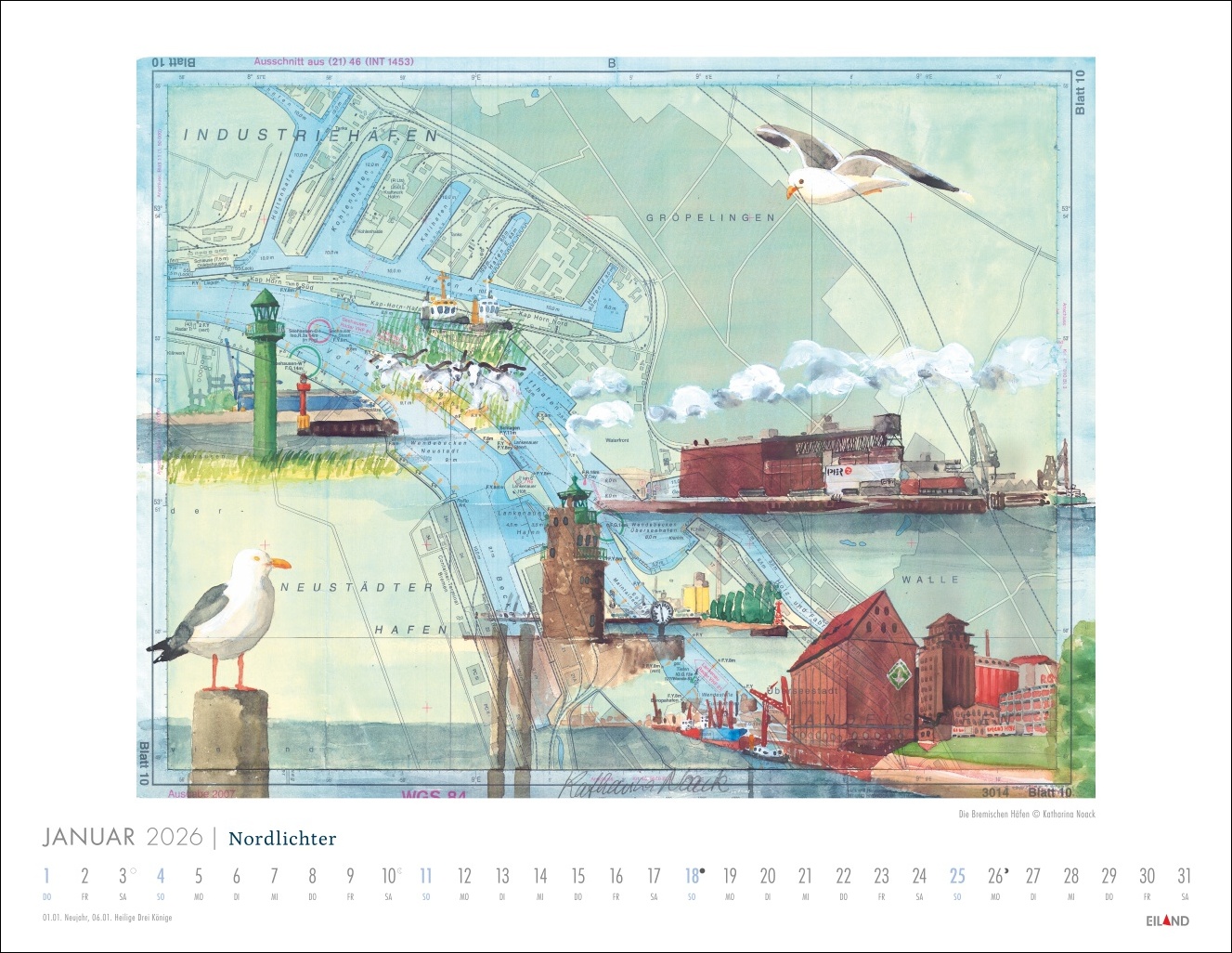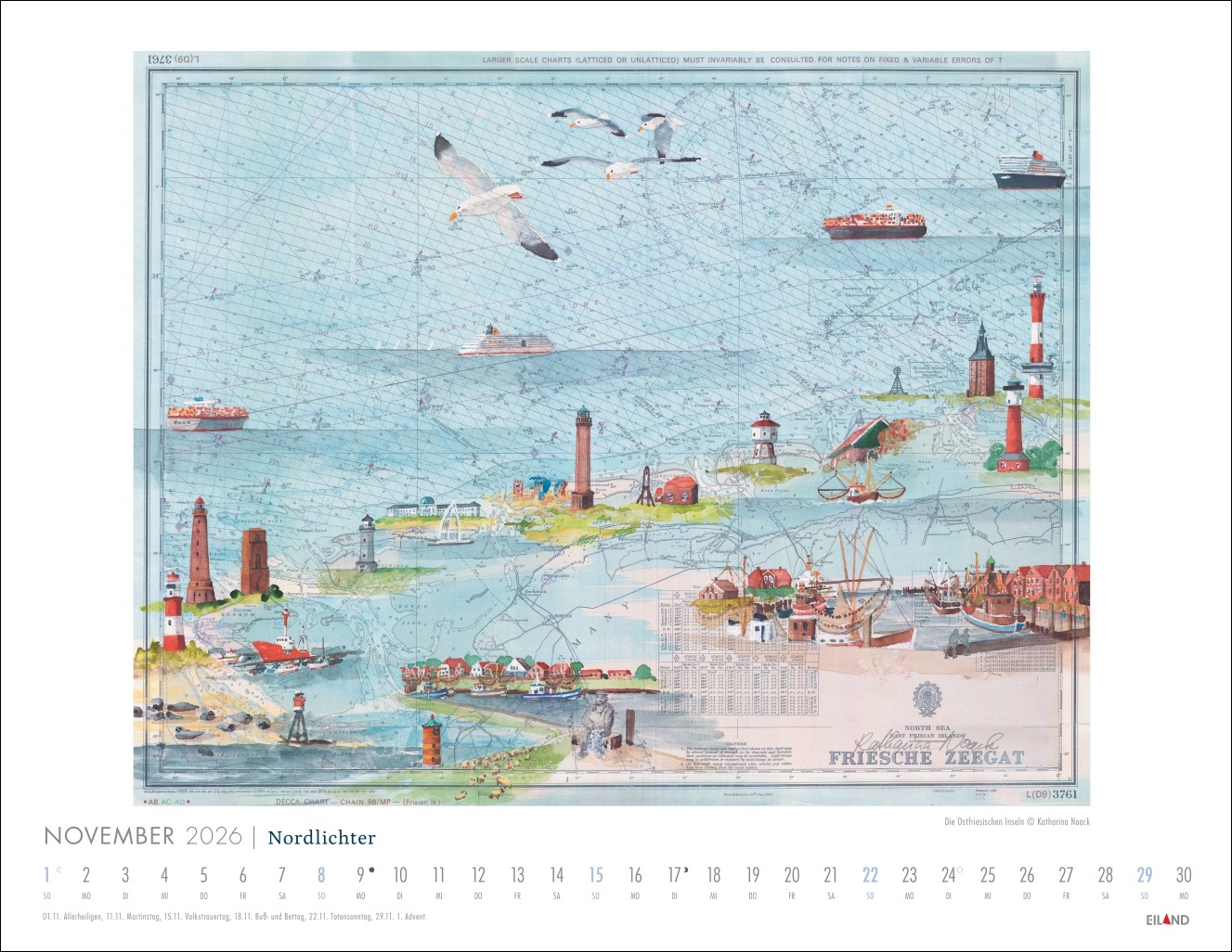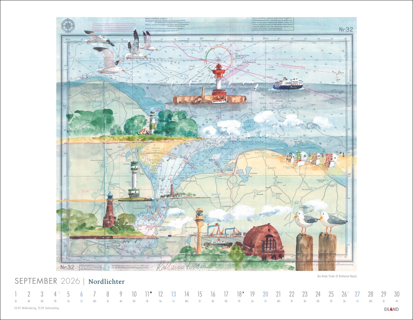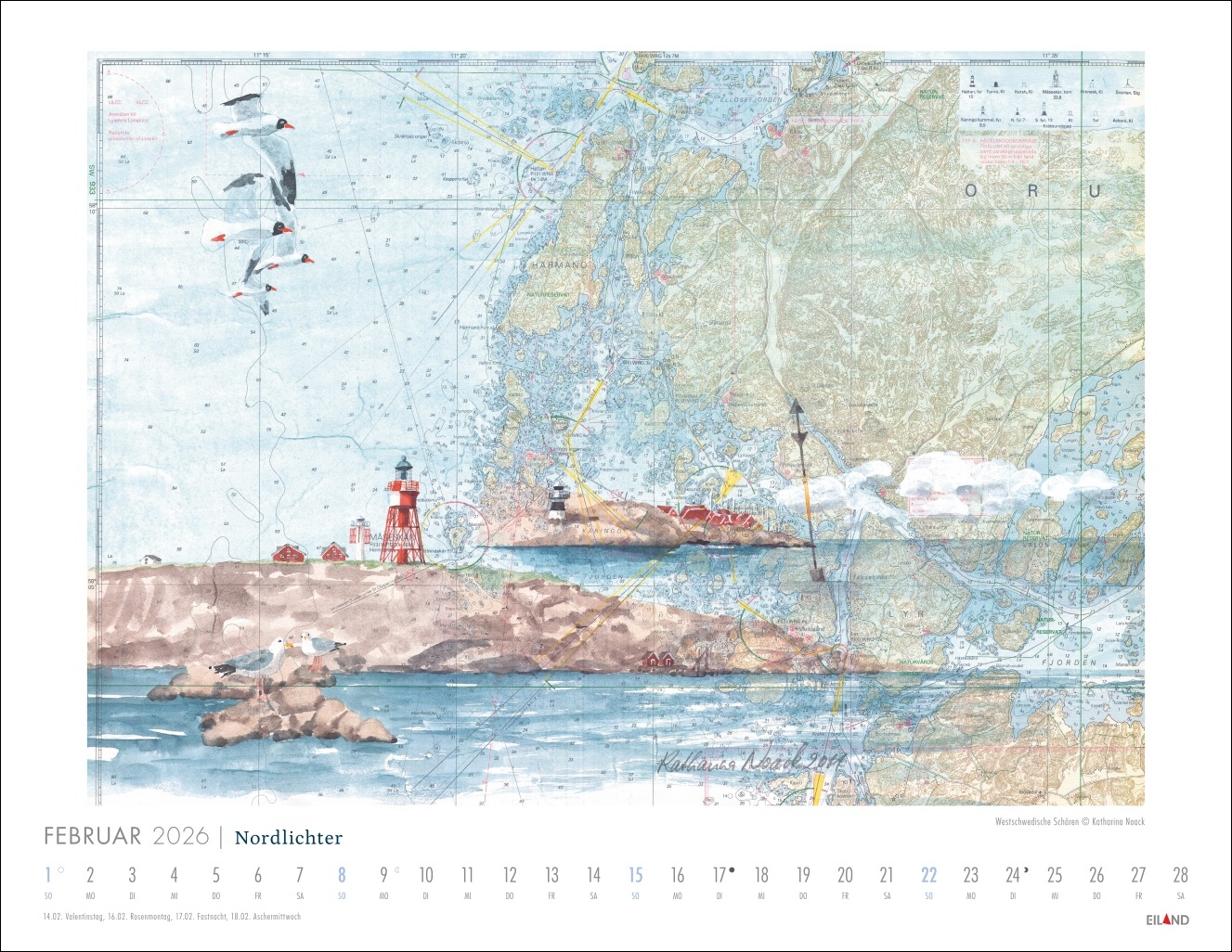 • maritime Motive in Aquarelltechnik – gemalt auf alten Seekarten